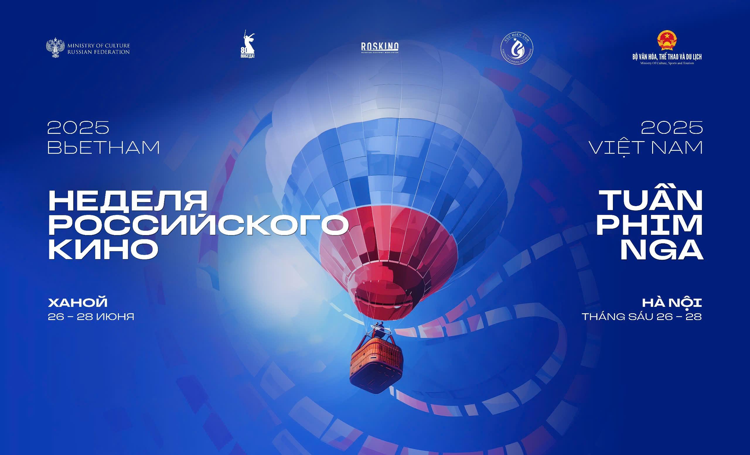 Tuần phim Nga tại Việt Nam năm 2025 sẽ diễn ra tại Trung tâm Chiếu phim Quốc gia, Hà Nội từ ngày 26/6 đến 28/6/2025. Khán giả yêu điện ảnh sẽ có cơ hội thưởng thức những bộ phim đặc sắc nhất của điện ảnh xứ sở Bạch Dương xinh đẹp trong khuôn khổ Tuần phim Nga tại Việt Nam 2025 – sự kiện giao lưu văn hóa đặc biệt nhằm giới thiệu đến công chúng Việt Nam những tác phẩm nổi bật của điện ảnh Nga giai đoạn 2021–2025.